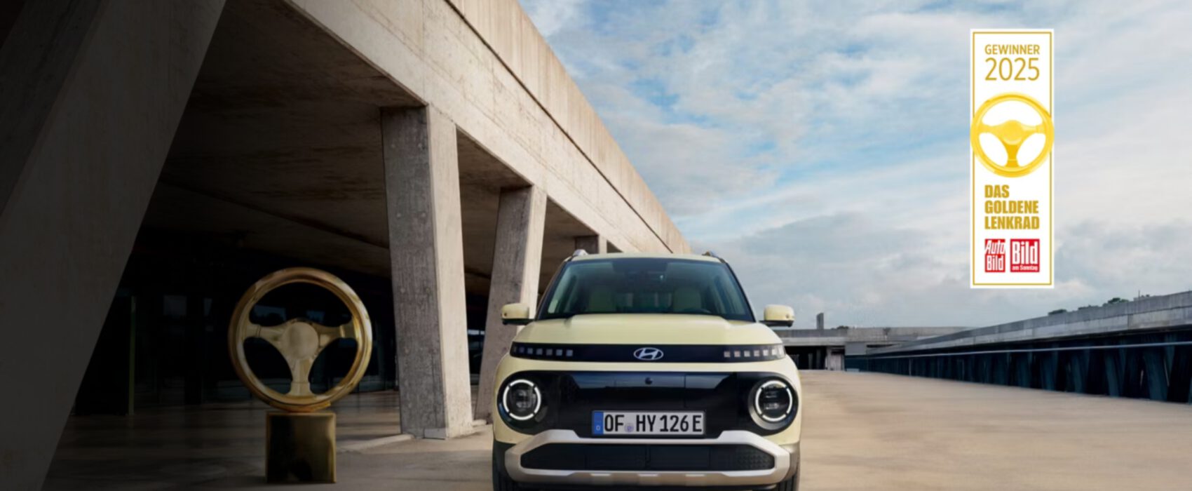 Kleines Auto, große Auszeichnung: Der Hyundai INSTER ist Gewinner des Goldenen Lenkrads 2025*. Das clevere Raumkonzept und die innovativen Ausstattungshighlights begeisterten die Fachjury der AUTO BILD und BILD am SONNTAG auf ganzer Linie.